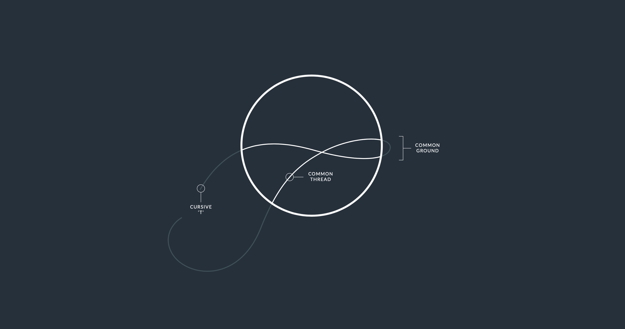 The logo reflects this mission—an elegant circle with thin, undulating lines inspired by a free strand of thread. It forms a T-shape cleverly cropped to resemble rolling hills, symbolizing common ground. The color palette is nourishing, rooted in wellness and nature: deep blues and greens, golden wheat tones, and cloudy blues combine to create a soothing experience.